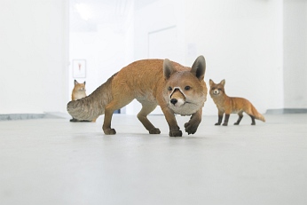 2018, Gartenfiguren aus Epoxidharz, präparierte Fuchsschnauzen (Foto: Dominik Dresel)