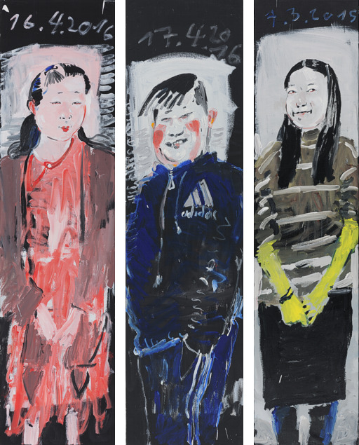 Aus der Serie Tianjin Friends (2015/2016), Acryl/Leinwand, 180-190 x 45 cm
