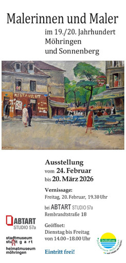 Unter dem Titel Malerinnen und Maler im 19./20. Jahrhundert Möhringen und Sonnenberg können im STUDIO 57A zahlreiche Werke regionaler Künstlerinnen und Künstler bestaunt werden.