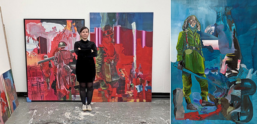 Arbeiten: Dieb mit Opfer, 2019, Öl auf Leinwand;